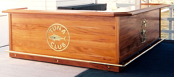This bar is made from solid mahogany and is finished to withstand the elements.